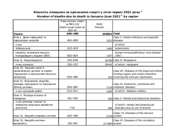 Государственная служба статистики Украины обнародовала данные о количестве умерших с указанием причин за январь-июнь 2021 года. С начала года умерло 349 041 человек, в том числе в июне — 49 077 человек. Об этом сообщает Госстат.