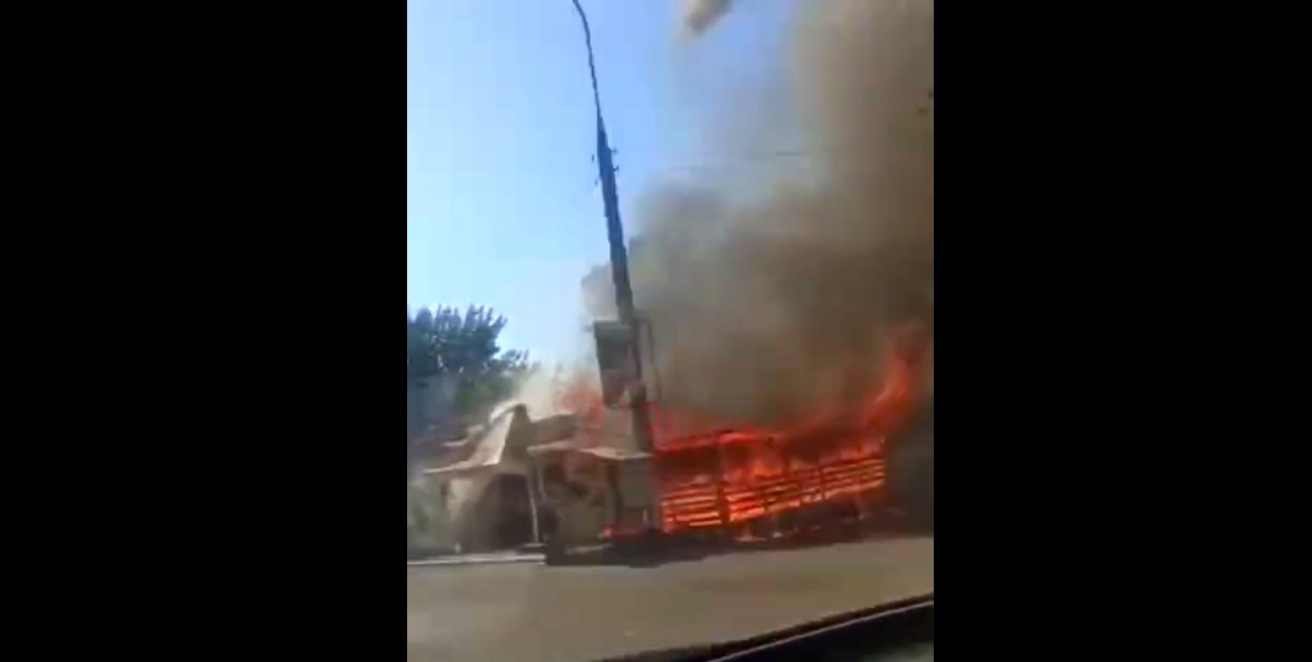 О пожаре в районе Двух столбов сообщают очевидцы.