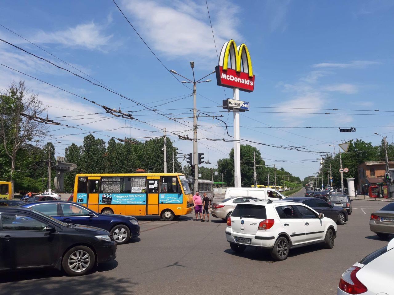 Легковушка столкнулась с маршруткой прямо на кругу, со стороны Макдональдса на пятой станции Большого Фонтана, передает репортер «Правды за Одессу».