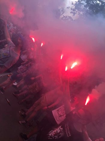 Началось все с того, что поддержка Стерненко начала мешать журналистке телеканала zik Алле Жизневской проводить прямое включение, вмешалась полиция и произошла потасовка. В результате столкновения были задержаны несколько человек, в том числе девушка радикала, которую вскоре отпустили.