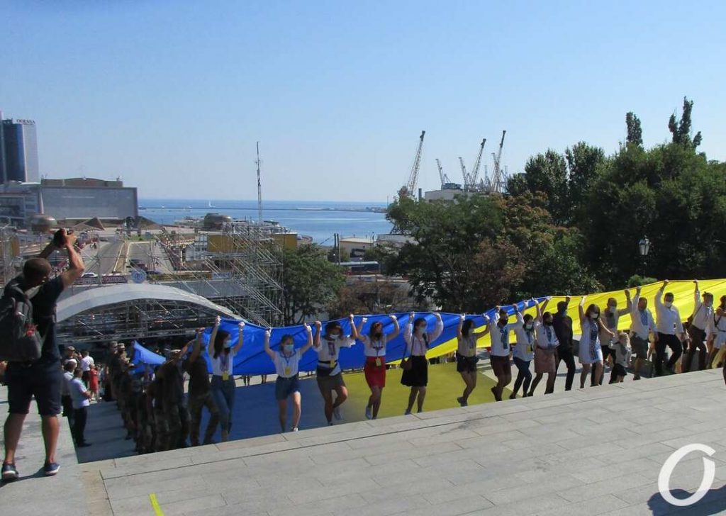 29-метровый флаг Украины — символ 29 лет Независимости Украины — сегодня развернули и пронесли над ступенями Потемкинской лестницы, передает «Одесская жизнь».