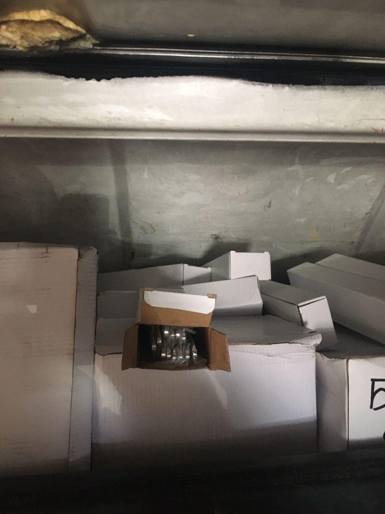 Во время углубленного осмотра автомобиля пограничники вместе с таможенниками обнаружили в багажном отделении скрытую полость, в которой находились различные столовые приборы (ложки, вилки) и замки.