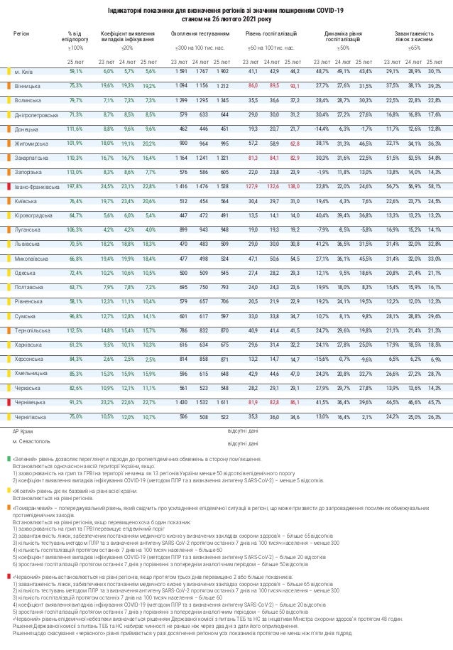 При этом по состоянию на 26 февраля в Украине показатель госпитализаций превышен в пяти областях — в Ивано-Франковской (138 на 100 тысяч населения при норме 60), Винницкой (93,1), Черновицкой (86,1), Закарпатской (82,9) и Житомирской (62,8) областях.