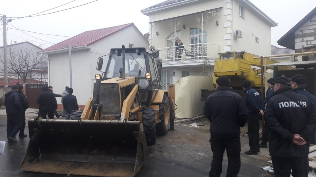 Три двухэтажных нахалстроя продолжают сносить на улице Гвардейской в Одессе сегодняшним утром. Квартал оцеплен полицией, движение транспорта перекрыто, передает «Думская».