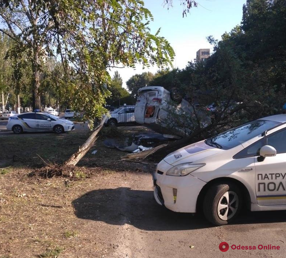 Сегодня утром на улице Черноморского казачества водитель автомобиля Hyndaі не справился с управлением, выехал на обочину, после чего машина перевернулась, повредив дерево, передает «Оdessa.online».