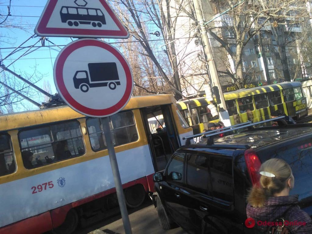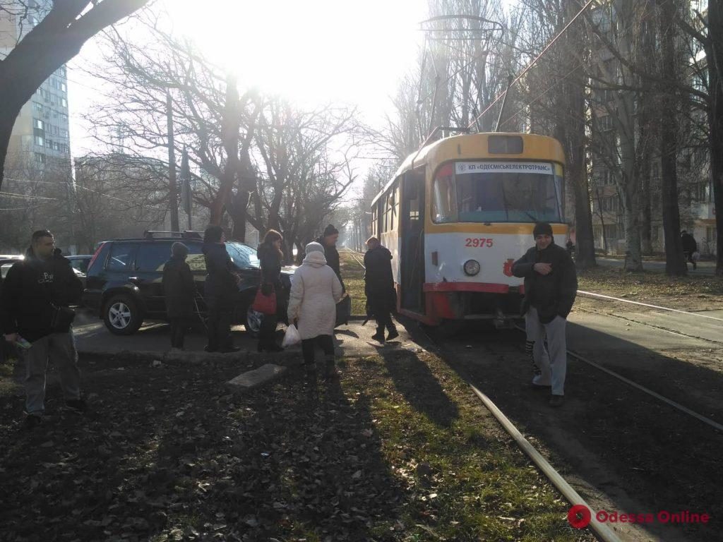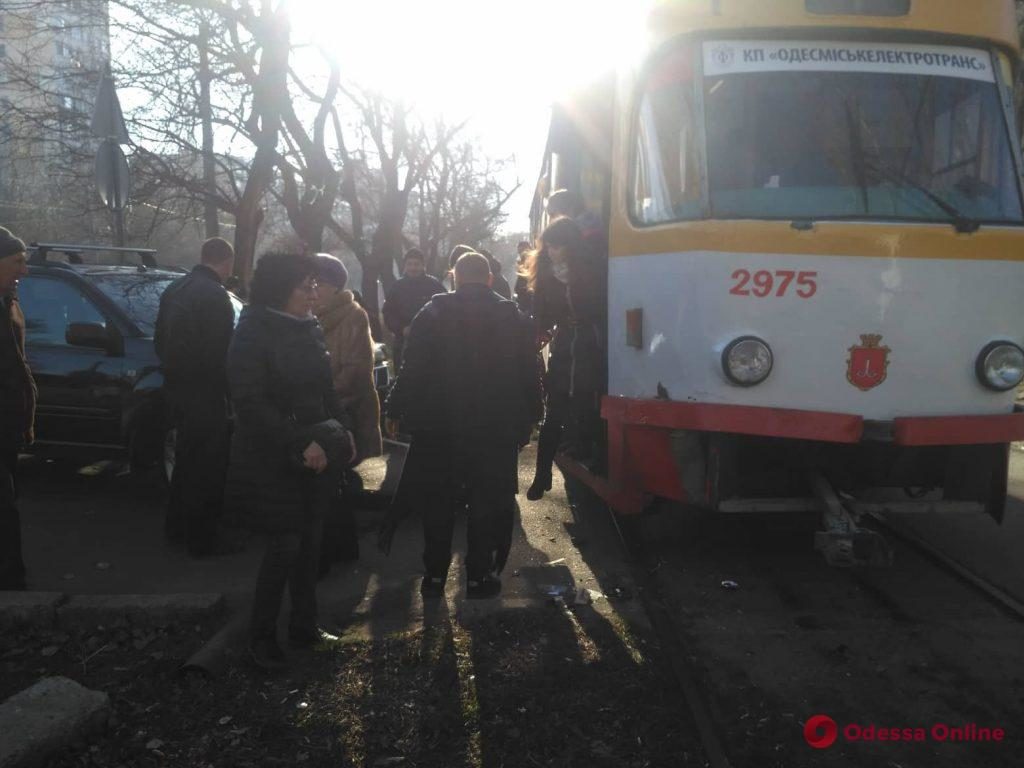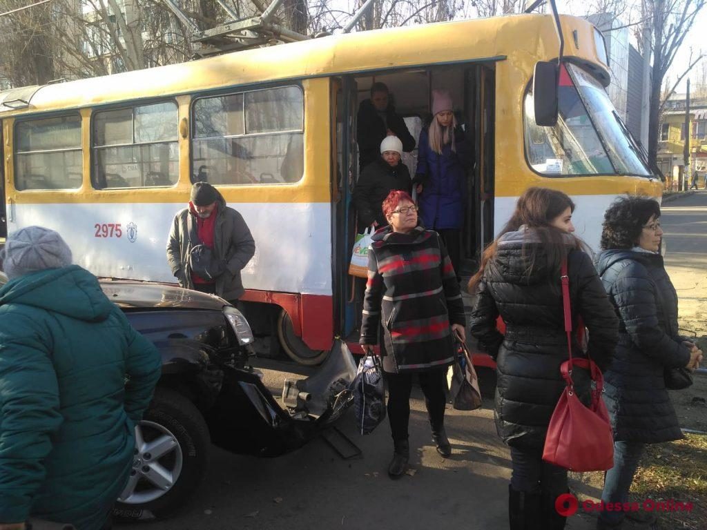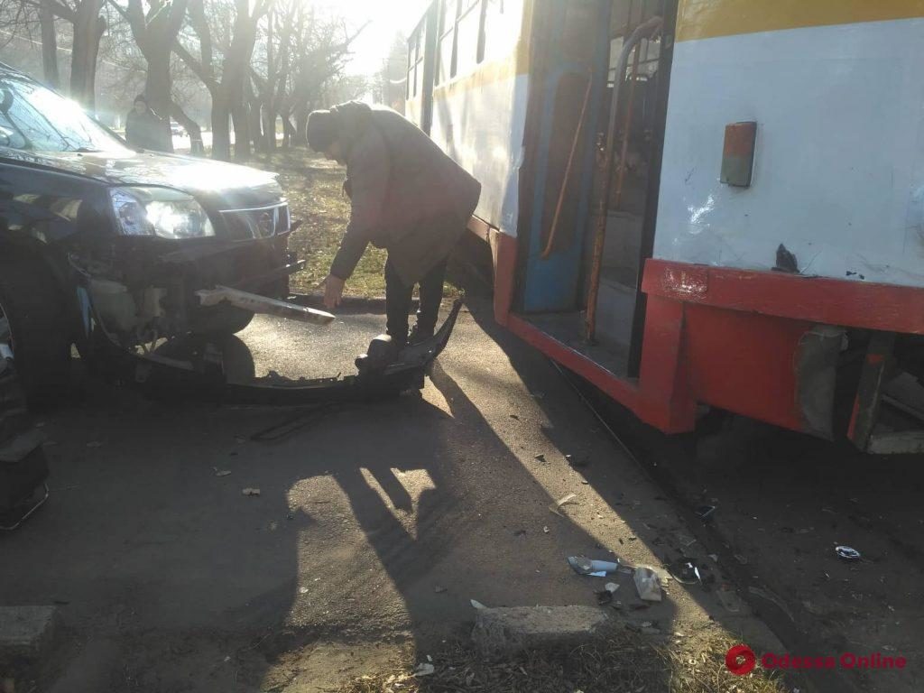 Сегодня возле остановки на Академика Заболотного в Суворовском районе Одессы произошло ДТП — Nissan X-Trail столкнулся с трамваем первого маршрута, передает «Оdessa.online».