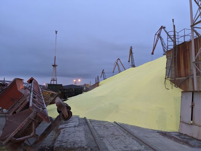 По предварительным данным серный бункер лопнул от переполнения. На землю высыпалось огромное количество гранулированной серы.