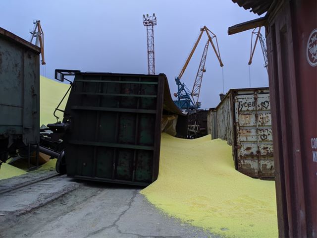 Сообщается, что бункер не выдержал нагрузки, стенки обвалились, пострадал железнодорожный состав.