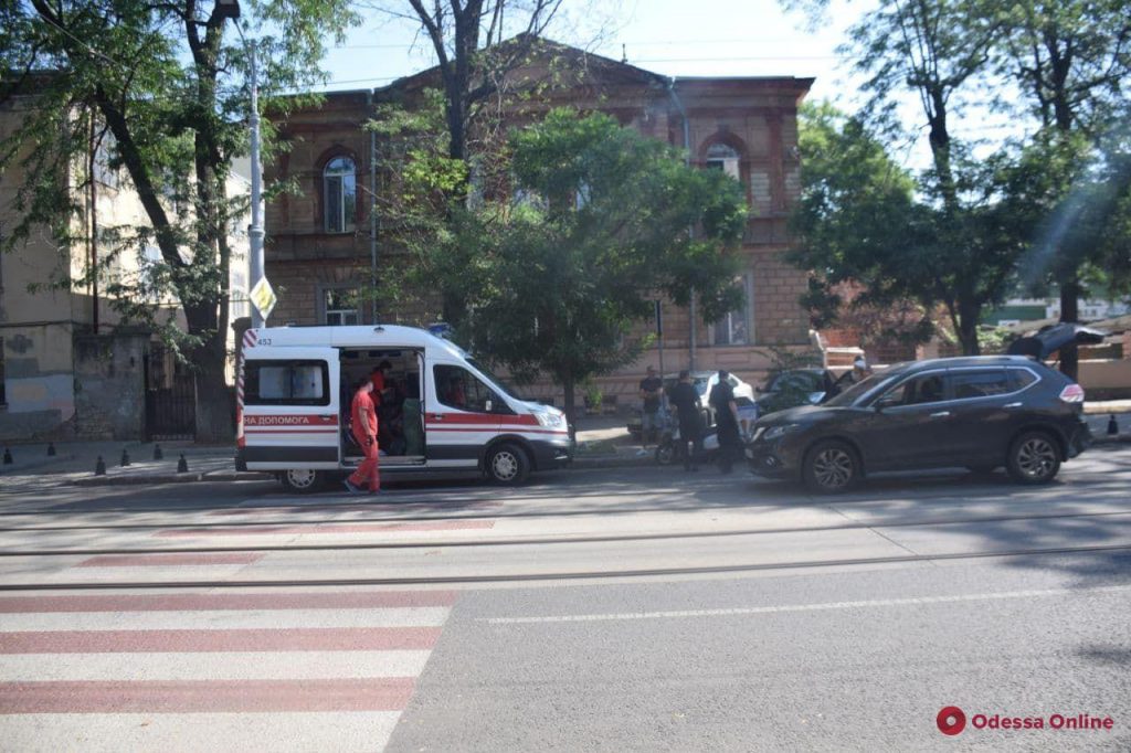 Авария произошла возле Одесского художественного музея. По предварительным данным, мопед доставщика еды столкнулся с кроссовером Nissan. Пострадал мопедист. Ему на месте оказывают помощь в карете «скорой». Проезд в районе аварии затруднен.