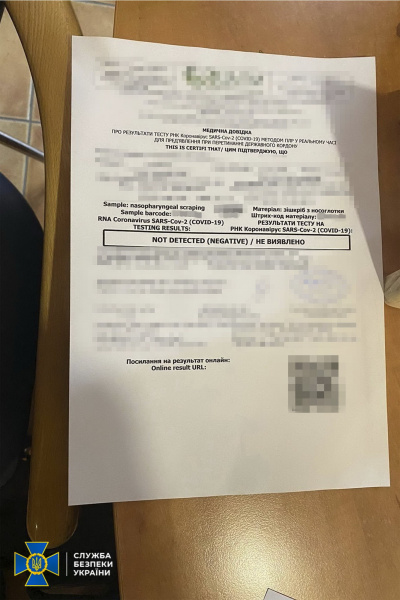 Сотрудники СБУ также разоблачили турагентство в Харьковской области, которое изготовляло фейковые ПЦР-тесты с «негативным» результатом, как «бонус» к купленному туру. Злоумышленники подделывали результаты исследований, в том числе и QR-коды.