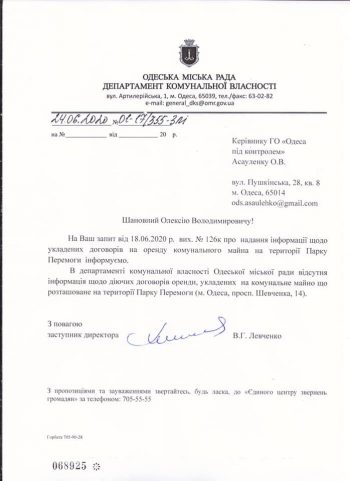 По его словам, получив ответ на свои запросы в департаменты городского хозяйства и коммунальной собственности горсовета, а также в коммунальные предприятия «Горзелентрест», «Сервисный центр» и «Парки Одессы», он пришел к выводу, что владельцы аттракционов не платят в бюджет города ни копейки и договоров с перечисленными организациями они не заключали.