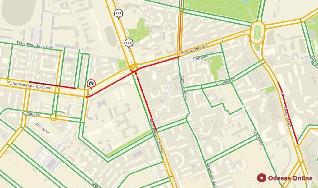 На Таирова заторы наблюдаются на въезде в город в районе кладбища, на Академика Глушко и Академика Королева в районе площади Независимости, на Люстдорфской дороге между 8-й и 7-й станциями, а также на Левитана и Инглези. Начиная от площади Толбухина в сторону центра на Краснова – тянучка, а на Люстдорфской дороге образовались пробки и произошло ДТП в районе Красного креста.