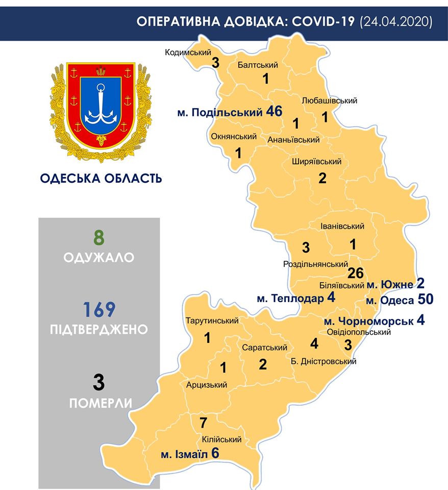 Всего лабораторным центром Минздрава Украины подтверждено 169 случаев заболевания в Одесской области, сообщают в пресс-службе ОГА.