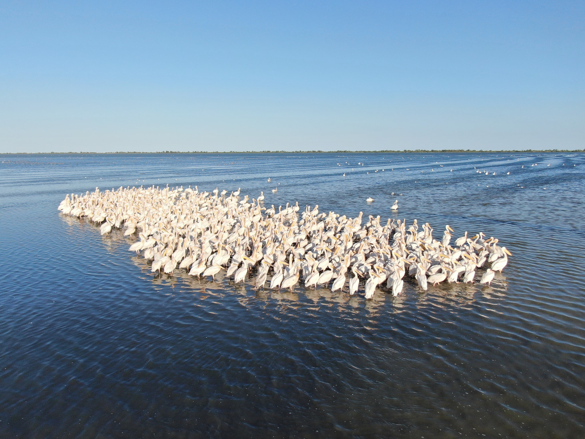 На Кордон нацпарка «Тузловская Амазония» прилетели розовые и кудрявые пеликаны, об этом на своей странице в Facebook сообщил руководитель научно-исследовательского отдела НПП Иван Русев.