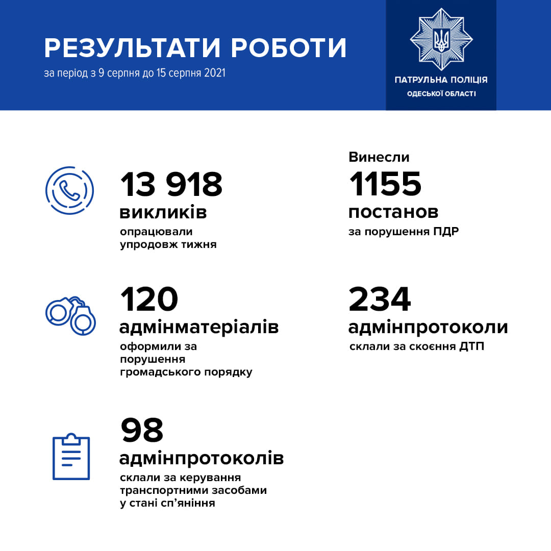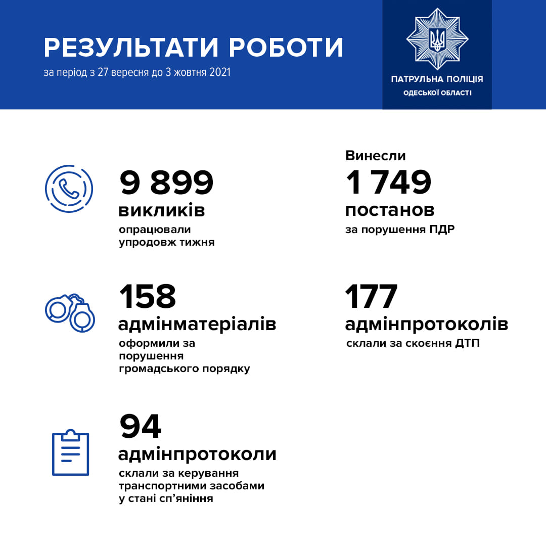 Пресс-служба патрульной полиции Одесской области отчиталась по работе городских подразделений за минувшую неделю.