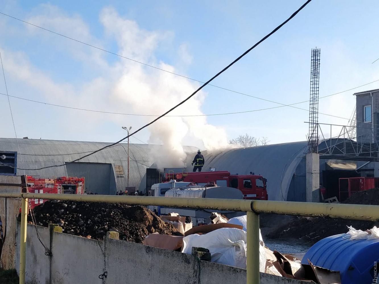 Складские помещения прямо сейчас горят на Базовой улице Одессы, у въезда на промтоварный рынок «Седьмой километр», передает «Думская».