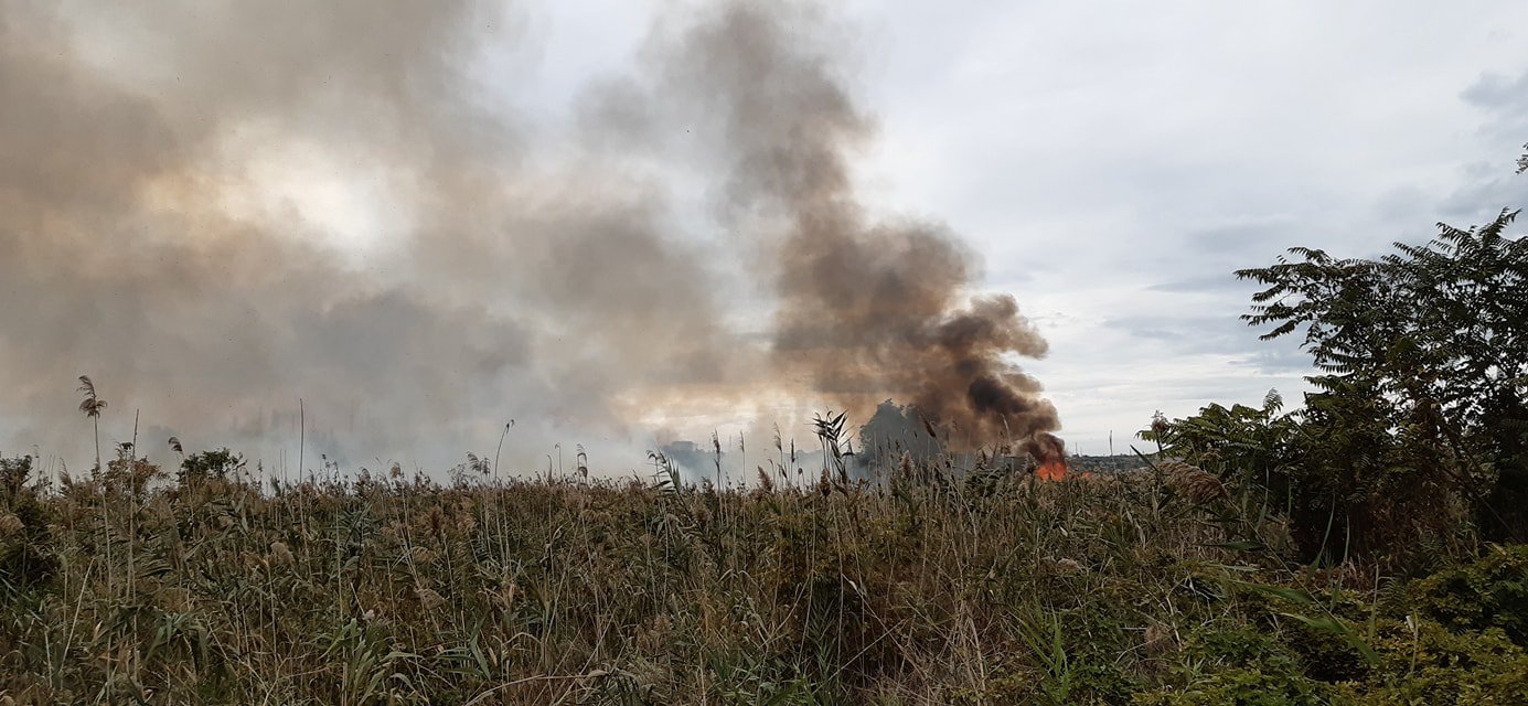 Уже больше часа горит сухая трава вдоль Хаджибеевской дороги.