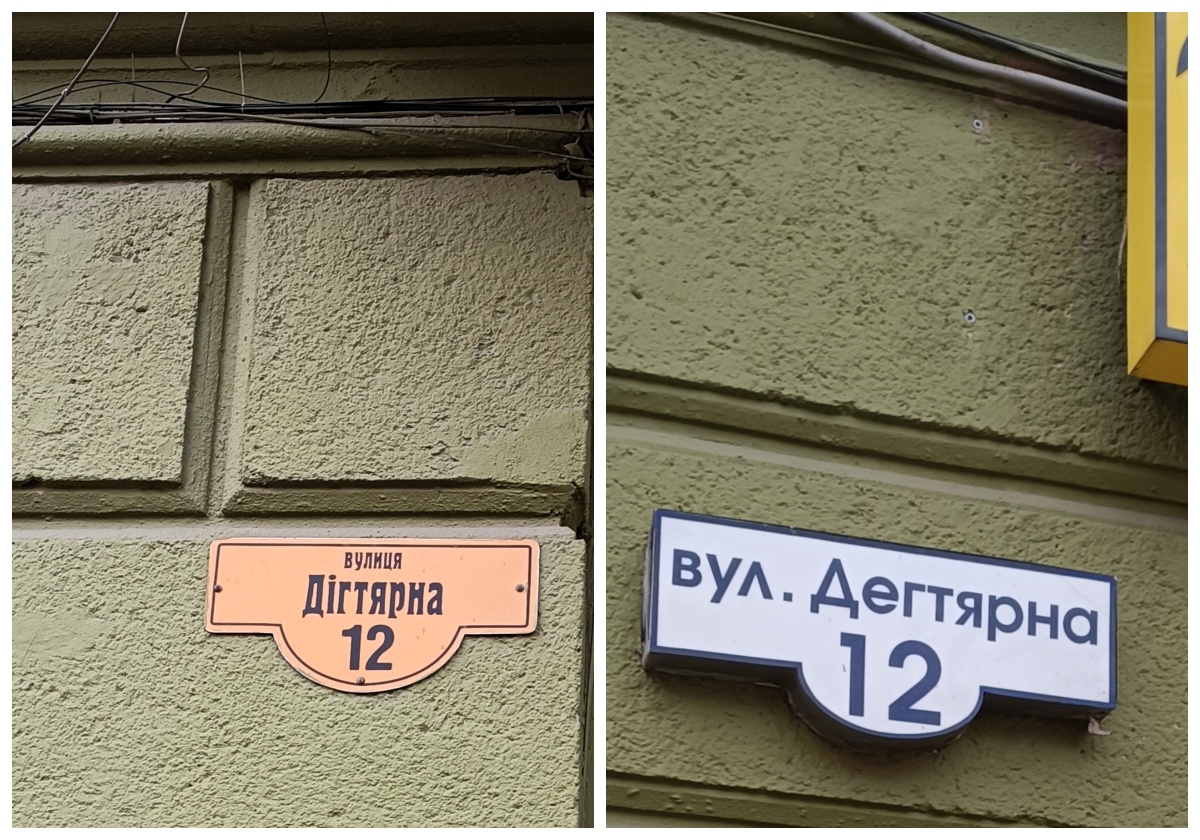 Продовжимо прогулянку Одесою. Раніше на одній із вулиць було помічено чотири (!) різні варіанти написання назви Ніжинської на адресних табличках: «Ніжинська», «НіжЕнська» та інші варіанти. А під час чергової прогулянки я йду вулицею, яка раніше називалася «Радянської міліції» — нині Дьогтярна — і бачу табличку з написом «Дігтярна».