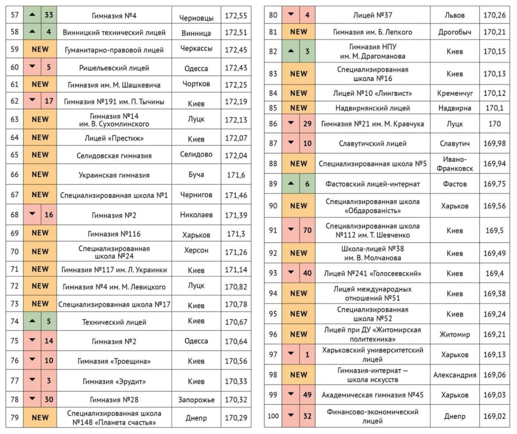 Рейтинг строится на итогах Внешнего независимого оценивания (ВНО). В 2020 году в ТОП-100 лучших школ Украины попали 3 одесских учебных заведения: