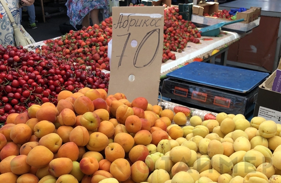 Прибавилось на прилавках и абрикосов, цена почти везде одна — 70 грн. за кило, а в супермаркете она стоит на 10 грн. дороже.