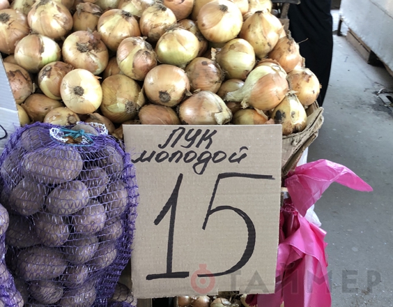 Репчатый лук нового урожая на базаре продаётся по 10-15 грн., магазинный — по 13, что на гривну дешевле, чем неделю назад.