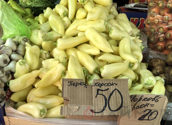 Отечественного светло–зелёного сладкого перца на прилавках стало заметно больше, чем на прошлых выходных, а цена немного снизилась — 50-60 грн. за кило. В магазине кило украинского перца оценили в 70 грн. Красный и жёлтый импортный перец стоит 85-110.