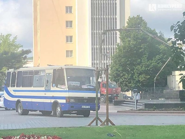 В центре Луцка на Театральной площади стоит автобус с заложниками. По предварительной информации в автобусе находится неизвестный мужчина, который заявляет, что у него есть взрывчатка. Шторы автобуса закрыты.