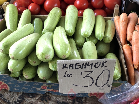 На прошлой неделе на базаре кило кабачков можно было купить по цене от 15 до 25 гривен, сегодня красивые и ровные продают за 30, явно залежавшиеся — за 18-20. В супермаркете кабачки тоже оценили в 30 гривен, что, впрочем, на 5 с половиной гривен дешевле, чем неделю назад.