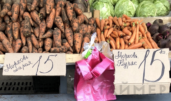 Морковь старого урожая можно встретить как по 5-6 гривен за кило, так и по 15. Молодая морковь продаётся на рынке по цене от 15-20 до 30 гривен, в магазине — по 35, что на 5 гривен дешевле, чем неделю назад. Молодая свёкла — от 15 до 30 гривен.