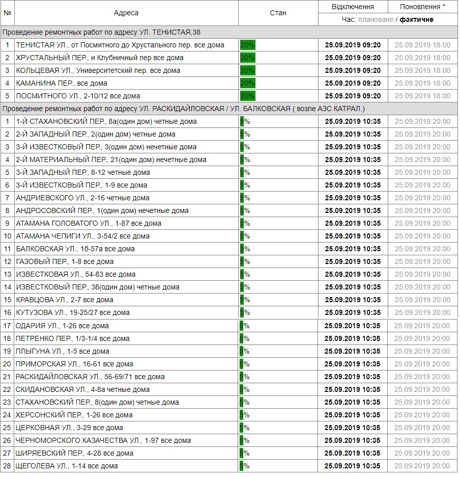 В связи с необходимостью проведения ремонтных работ на ул. Тенистой и пересечении улиц Балковской и Раскидайловской, водоснабжение временно отключено по следующим адресам: