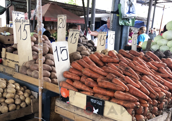Крупную морковь на рынке продают в основном по 15 гривен за кило, магазинная — по 11, как и на прошлой неделе. Мелкий картофель торговцы отдают по 10-12 гривен, крупный — по 13-20. Магазинная картошка — от 13 за килограмм. За 6-10 гривен можно купить килограмм репчатого лука, магазинный лук — по 6.