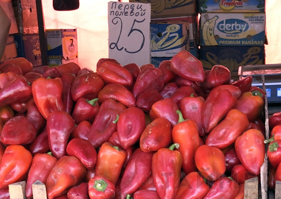 Самые простые светло-зелёные перцы на базаре можно взять по 12-18 гривен, красные — по 20-40. Наиболее доступные магазинные перцы — по 20, импортные красные — по 65 с половиной.