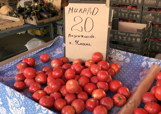 За килограмм мелких полевых томатов торговцы просят 12-15 гривен, реже встречаются варианты по 10. Помидоры более крупных сортов, в том числе микадо, можно купить по цене от 20 до 40 гривен за килограмм. В супермаркете популярной городской торговой сети полевые «сливки» оценили в 15 гривен за кило, как и неделей ранее. Килограмм микадо в супермаркете можно купить за 40 гривен, как и на прошлых выходных.