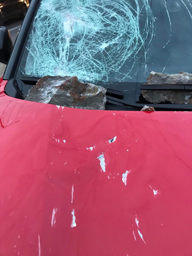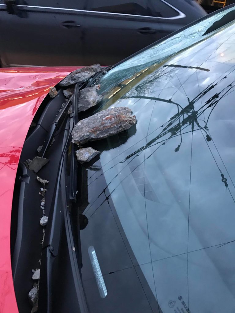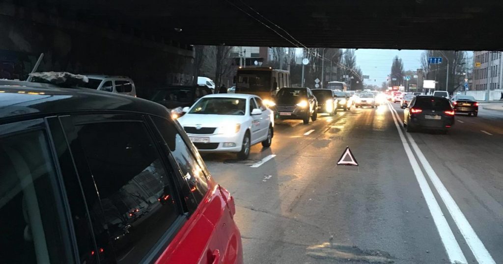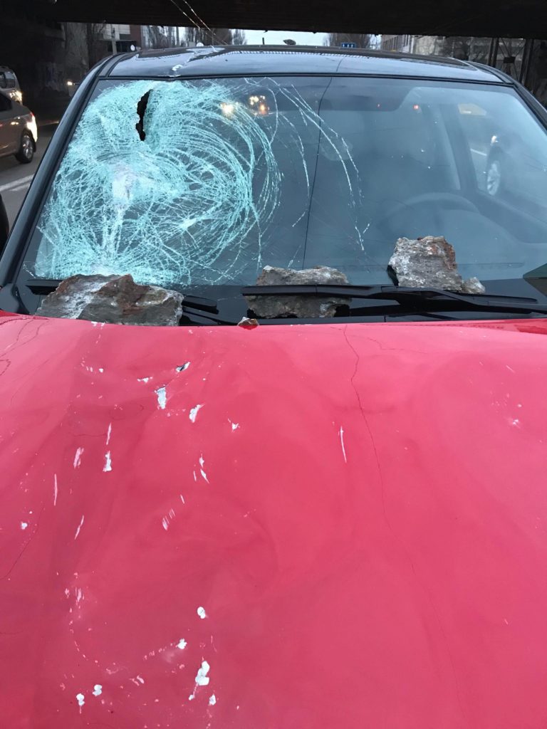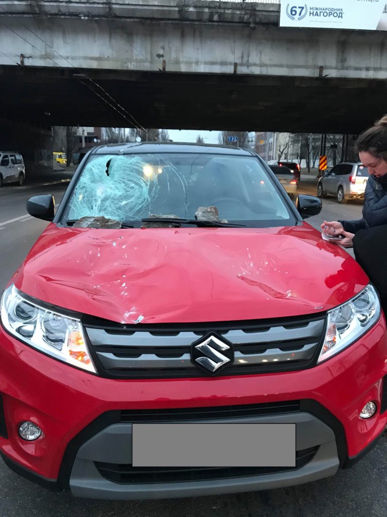 Куски Дегтярявского путепровода в Киеве обрушились на машину, которая двигалась под мостом, передает «ТСН».