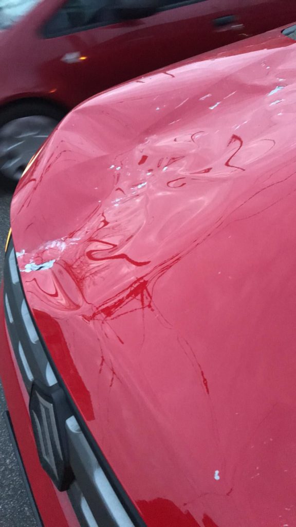 У случайно проезжавшего «паркетника» разбито переднее стекло, существенно поврежден капот и крыша. Для оформления ДТП перекрыли одну из полос движения, из-за чего образовался затор.
