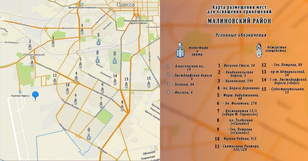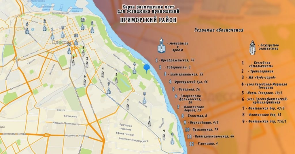 Согласно инициативе, в густонаселенных районах города, удаленных от храмов, утверждены определенные места, возле которых священнослужители Одесской епархии УПЦ будут совершать освящение пасхальных корзинок.