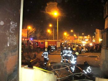 Жители из задымленной зоны были эвакуированы по лестничным маршам.