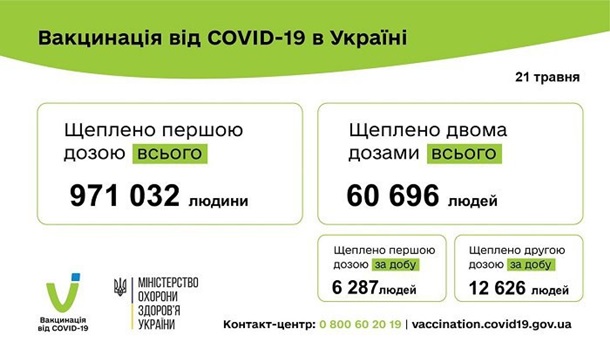 За минувшие сутки в Украине второй дозой вакцины от коронавируса привили вдвое больше людей, чем первой. Об этом свидетельствуют данные Минздрава в пятницу, 21 мая.