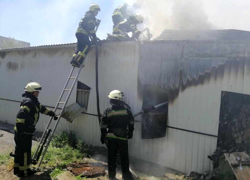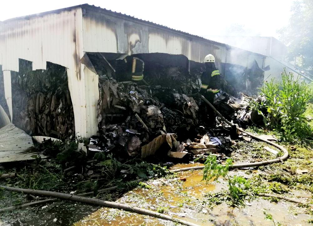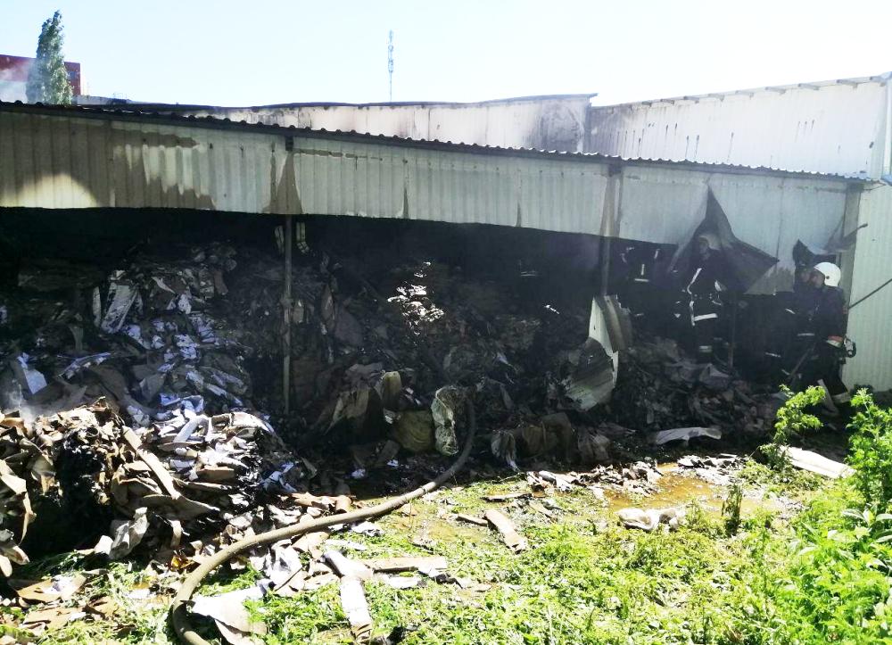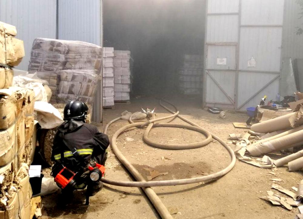 К месту вызова в 12:21 прибыли первые пожарно-спасательные подразделения и было обнаружено возгорание отдельно стоящего одноэтажного помещения, где складировались и перерабатывались бумажные материалы. Сложность тушения пожара заключалась в плотном складировании бумажного вторсырья. Пожарно-спасательные подразделения использовали средства защиты органов дыхания и зрения.
