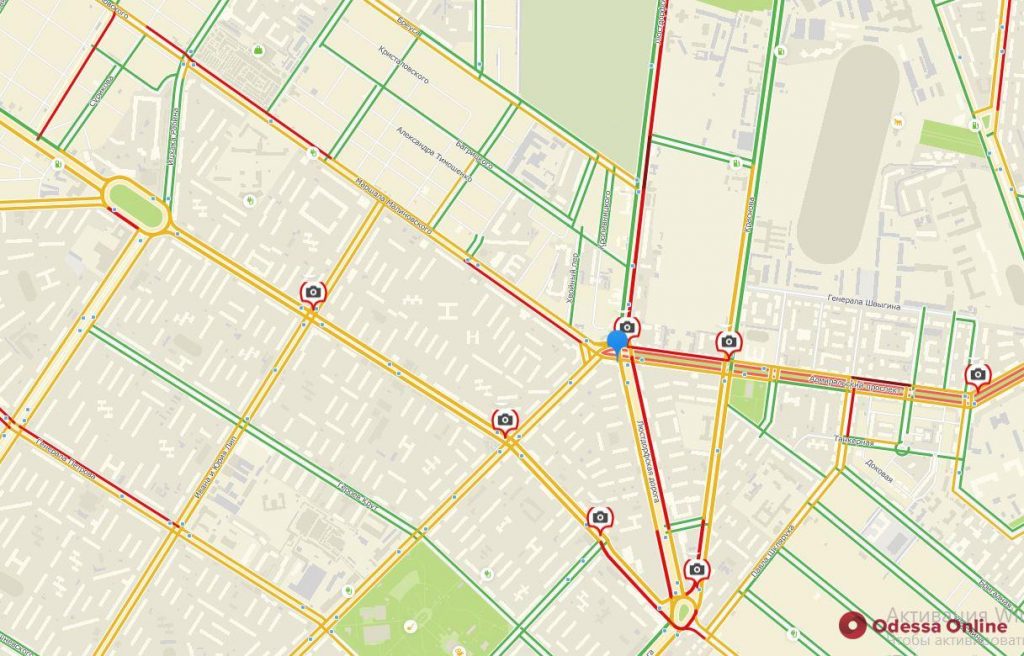 Пробки образовались в районе 7-й, 6-й и 5-й станций Фонтанской дороги, на Посмитного, Генуэзской, Сегедской, проспектах Шевченко и Гагарина, и на Адмиральском проспекте.
