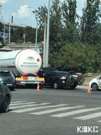 Автомобиль Renault и грузовой автомобиль для перевозки сжиженного природного газа столкнулись сегодня недалеко от центрального Автовокзала Одессы, пишет «КЕКС».