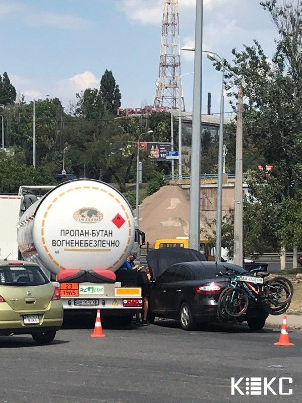 Автомобиль Renault и грузовой автомобиль для перевозки сжиженного природного газа столкнулись сегодня недалеко от центрального Автовокзала Одессы, пишет «КЕКС».