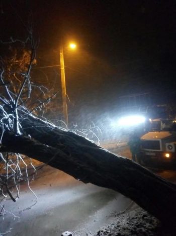 Упало за ночь 38 деревьев, из них 34 убрали и 4 в работе.