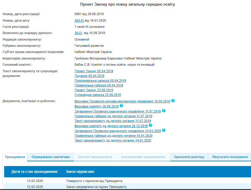 Глава государства Владимир Зеленский в пятницу, 13 марта, подписал законопроект №0901 «О полном общем среднем образовании». Об этом говорится сайте Верховной Рады.